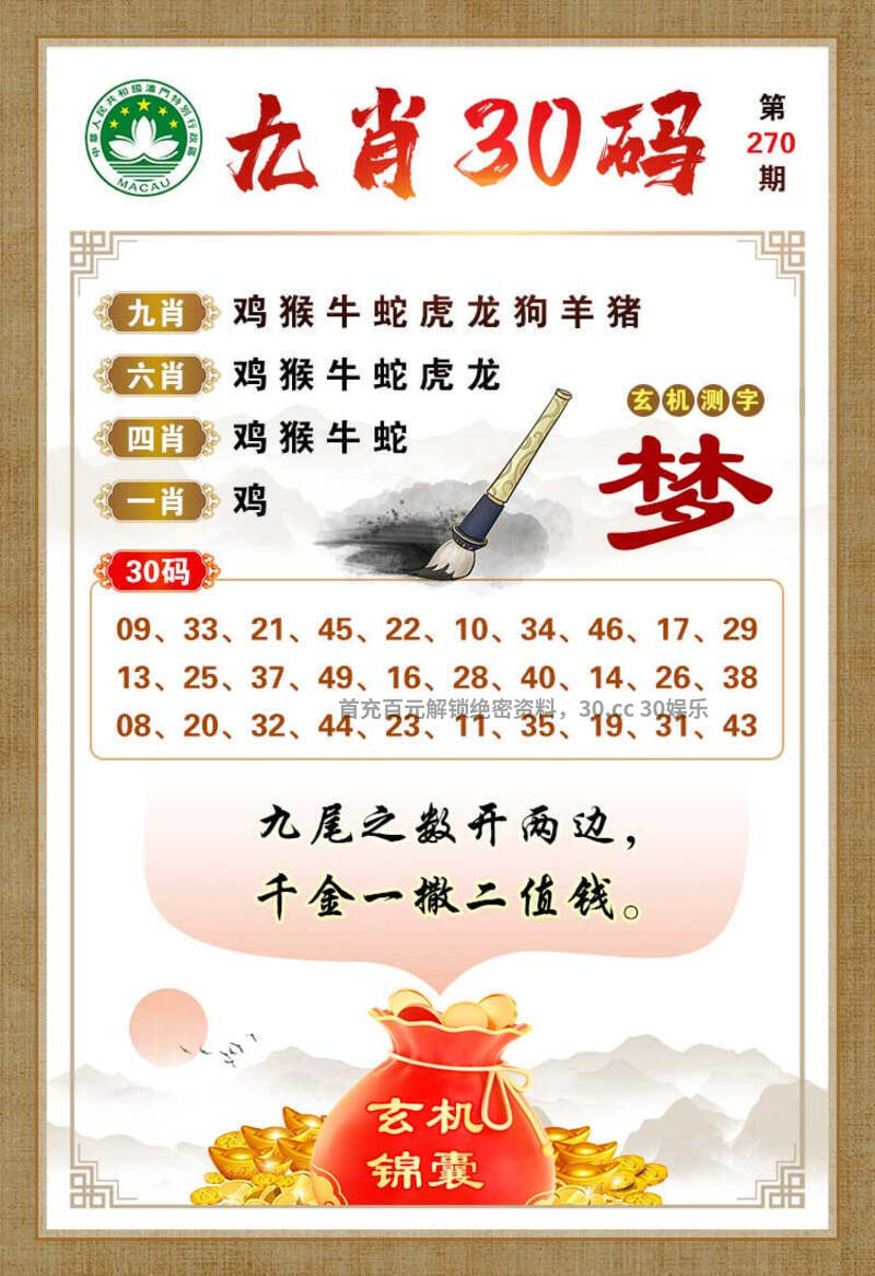 270期:【绝杀二肖】〖牛猴〗开:羊35准 |